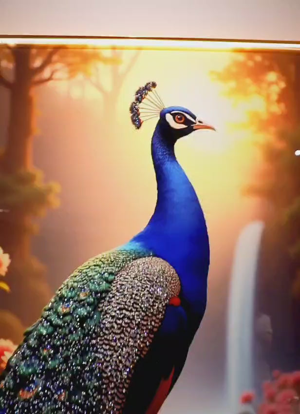 Elephant Crystal wall art frame-Blue|4x2.5 Feet+LED
